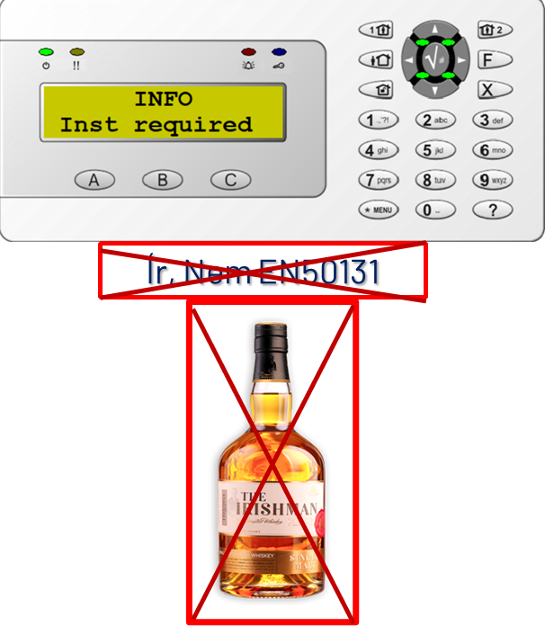 A TELEPÍTÉS művelet (első indításkor) során, az rendszer megismeréséig célszerű a Nem EN50131 opciót válasszuk ki a második pontban, a központ nyelv beállítása után. Ezek a paraméterek utólag nem módosíthatók, csak a központ alapra állítása után.