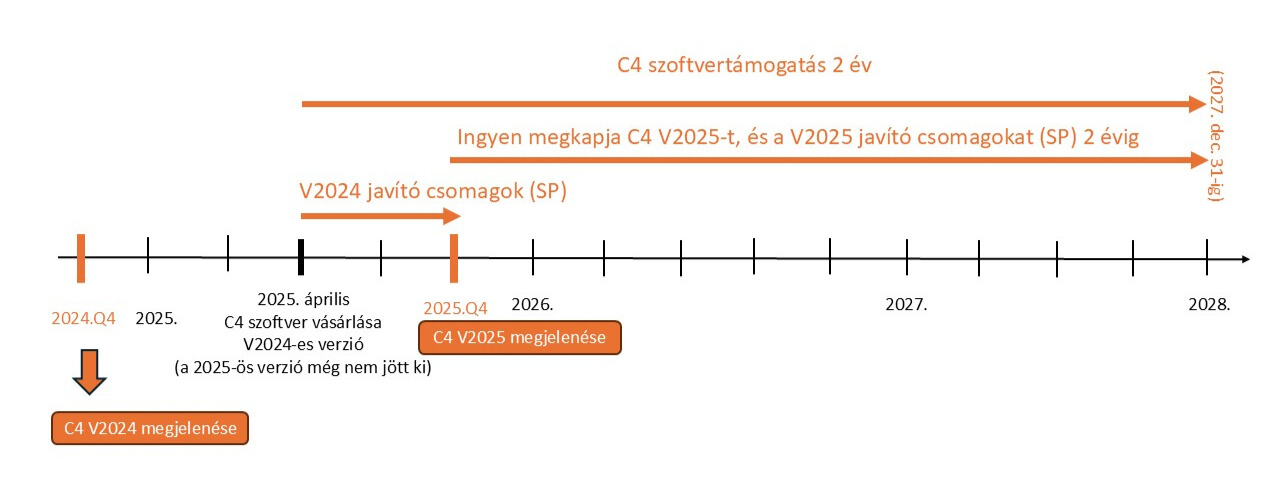 2025 áprilisában vásárolt C4 v2024 licenc az akkor elérhető verzió, de 2025. december 31-ig kijövő verziók is járnak hozzá.