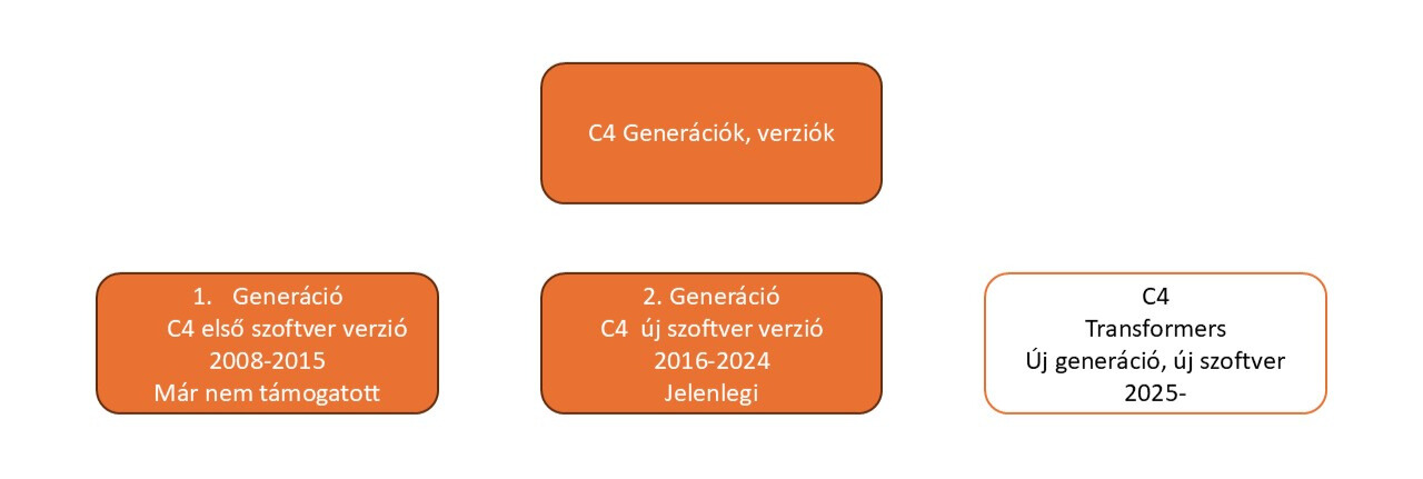 - Generáció – „C4 Transformers” (2025 várható) – új alapokra épített szoftver, gyorsabb és hatékonyabb szerveroldali működéssel, még több integrációval.