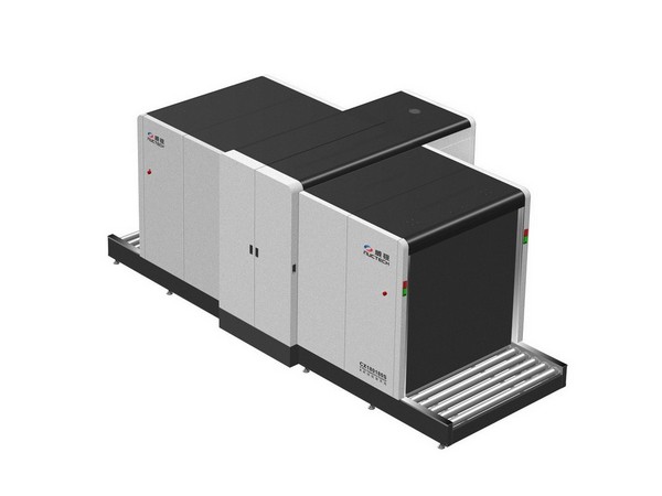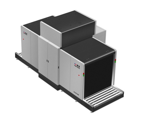 Kétnézetes csomagvizsgáló röntgen, felül és oldalt elhelyezett röntgengenerátorral, 155x180 cm-es alagút mérettel., , Főbb műszaki paraméterek:, Alagút mérete: 1550x1806 mm, Szalag sebesség: 0.2 m/mp., Szalag magassága:320 mm, Szalag terhelhetősége: 2000 kg, Vezeték érzékelés: 38 AWG, Acél áthatolás: 50 mm, Készülék mérete (HxSZxM): 5736x2802x3141 mm, Készülék tömege: 4145 kg, Felvett teljesítmény: 2.5 kVA.