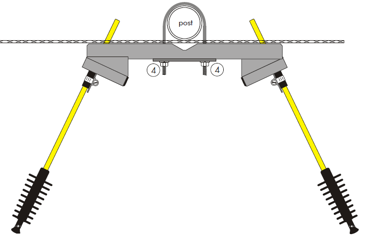Kétszeres feszítő pont készlet, 4 vezetékes, 10,1 cm(4") átmérőjű oszlophoz. Tartalmaz szerelési anyagot és szigetelést.