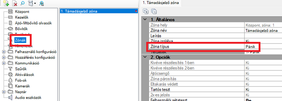 A támadásjelző zóna típusánál válasszuk a ’Pánik’ zóna típust.