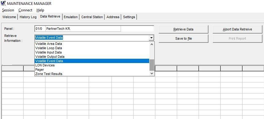 1. Válassza a „Data Retrieve” fület, majd a „Retrieve Infromation” (6. ábra) legördülő listájából a „Volatile Event Data” lehetőséget